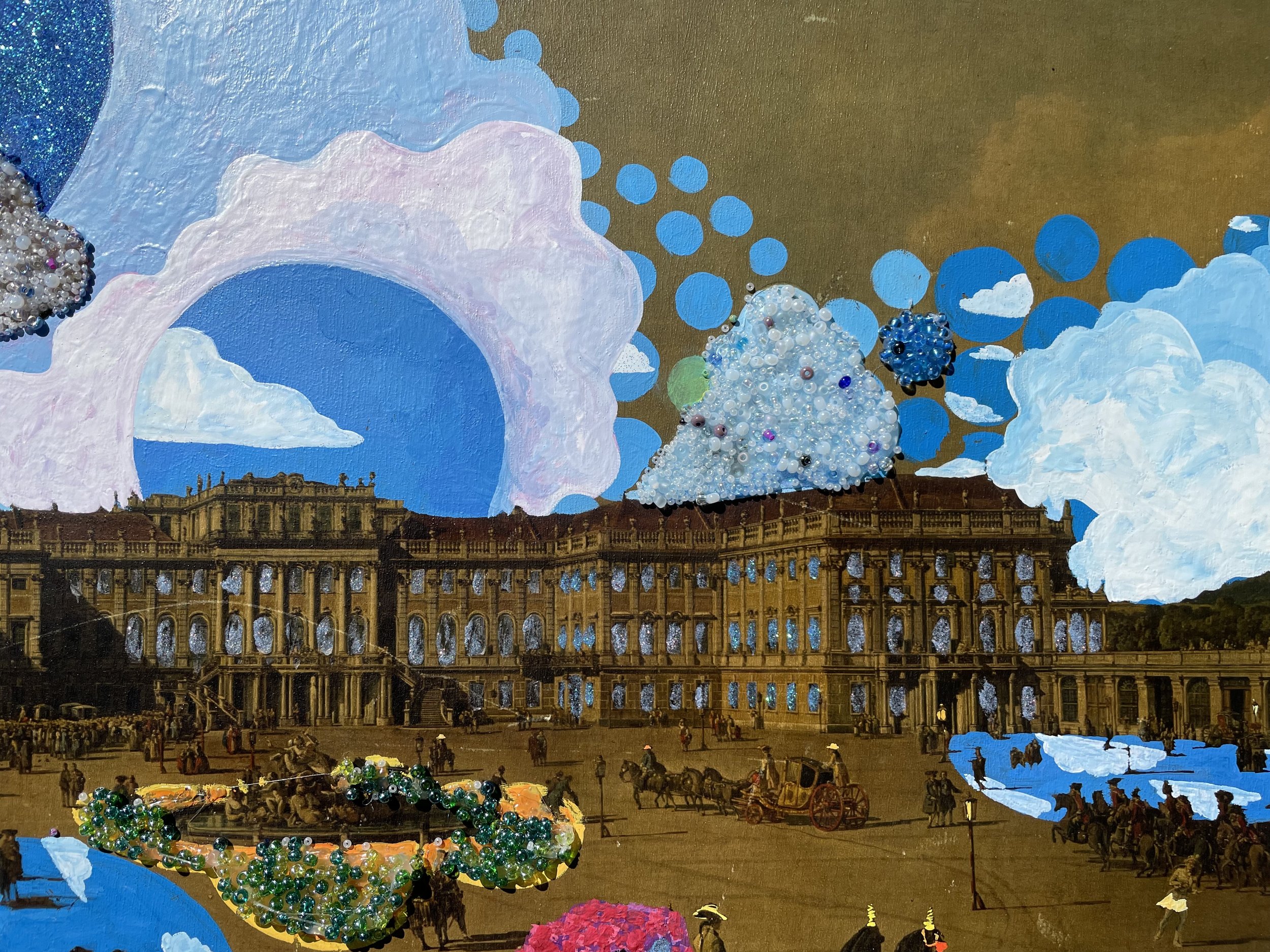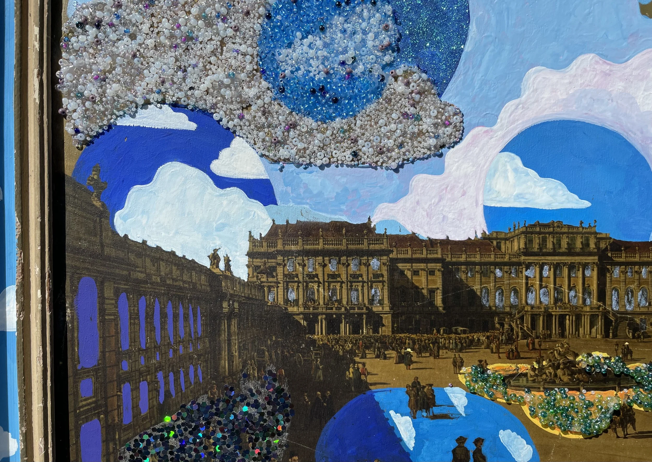 Acrylic Paint, Assorted Glass Beads, Glitter, Hot Glue, and ModgePodge